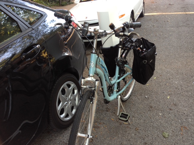My first day at school for our professional development days. Since my school is only .89 miles from my house, I thought I would help the environment and my body and ride to work. However, I had 32 picture books I needed to bring to school, along with a large posterboard. I loaded them in my saddle bags and pedaled to work. My bike was a lot heavier than I had anticipated and the ride took a lot longer than expected. I was almost late to work, arriving tired and very sweaty. I am sure it was a great first impression!